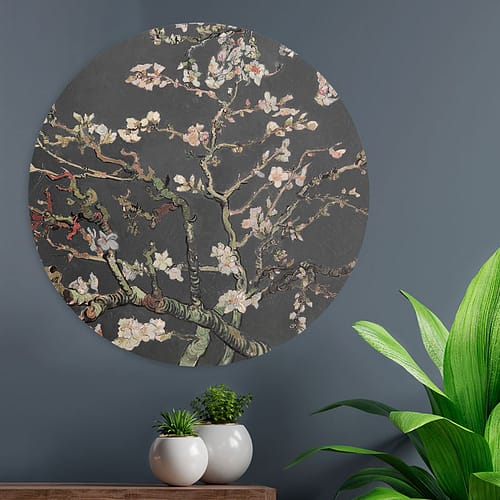 Onze muurcirkel is vervaardigd uit duurzaam en lichtgewicht Dibond – een samengesteld materiaal van polyethyleen en aluminium. Hierdoor ontstaat een solide constructie die de tand des tijds doorstaat. Het beeld van “Amandelbloesem” is met precisie op het Dibond oppervlak gedrukt, waarbij de rijke kleuren en fijne details van het originele kunstwerk behouden blijven. Dankzij de eigentijdse cirkelvorm geeft dit kunstwerk een modern tintje aan de klassieke afbeelding, waardoor het een opvallend middelpunt wordt in elke kamer.